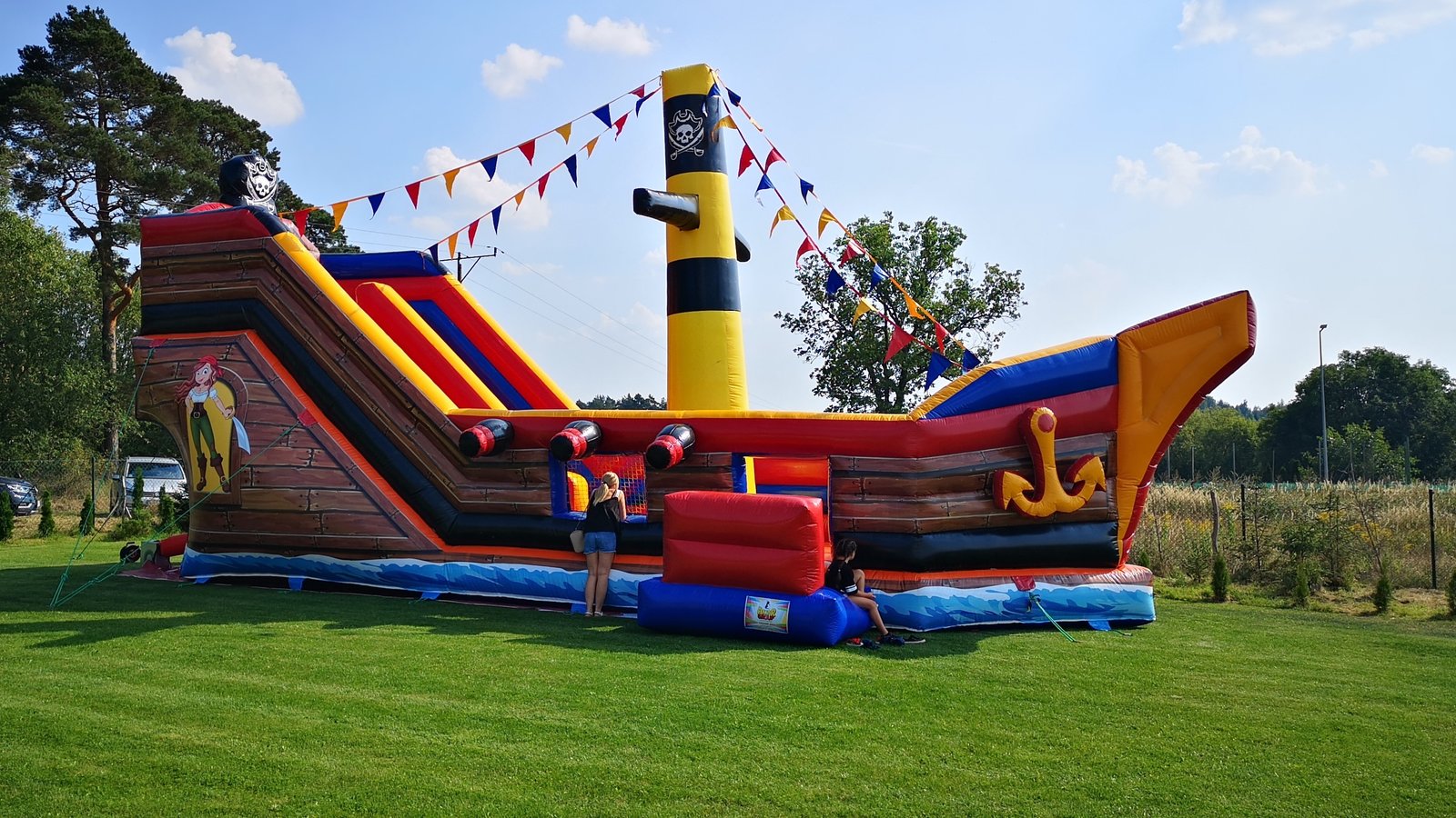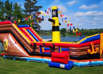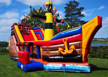 Statek piracki to zjeżdżalnia zbudowana wewnątrz dmuchanego statku.
