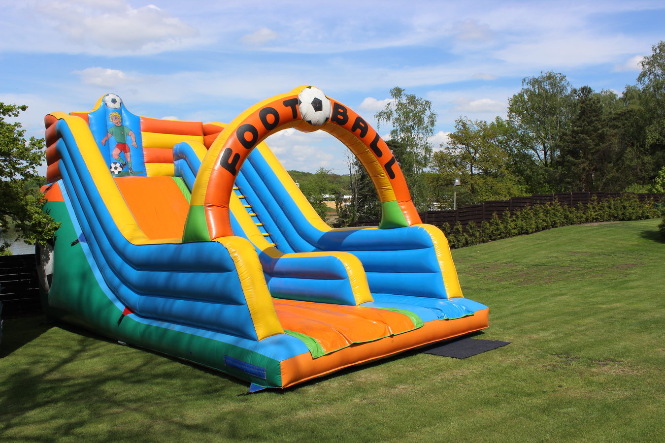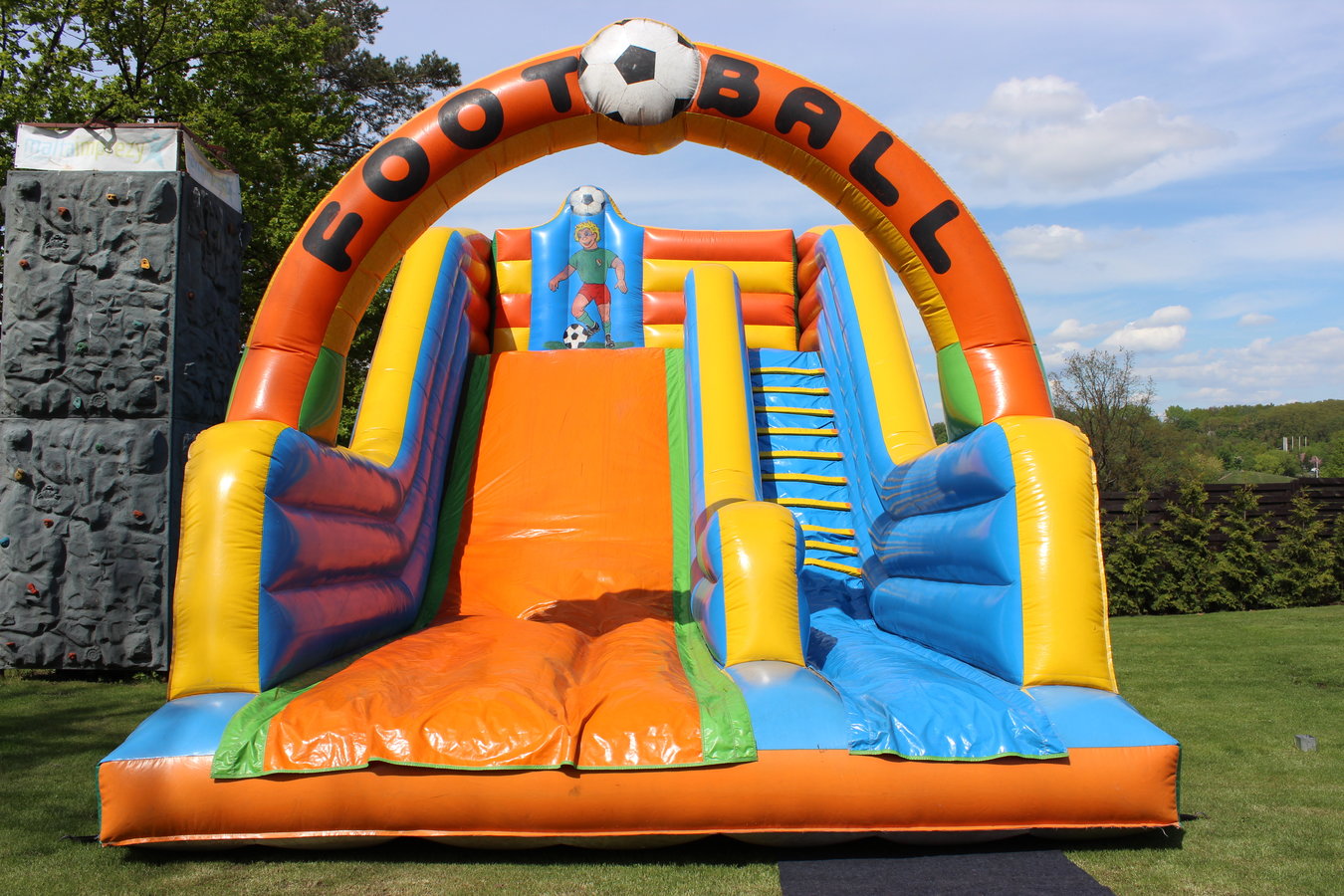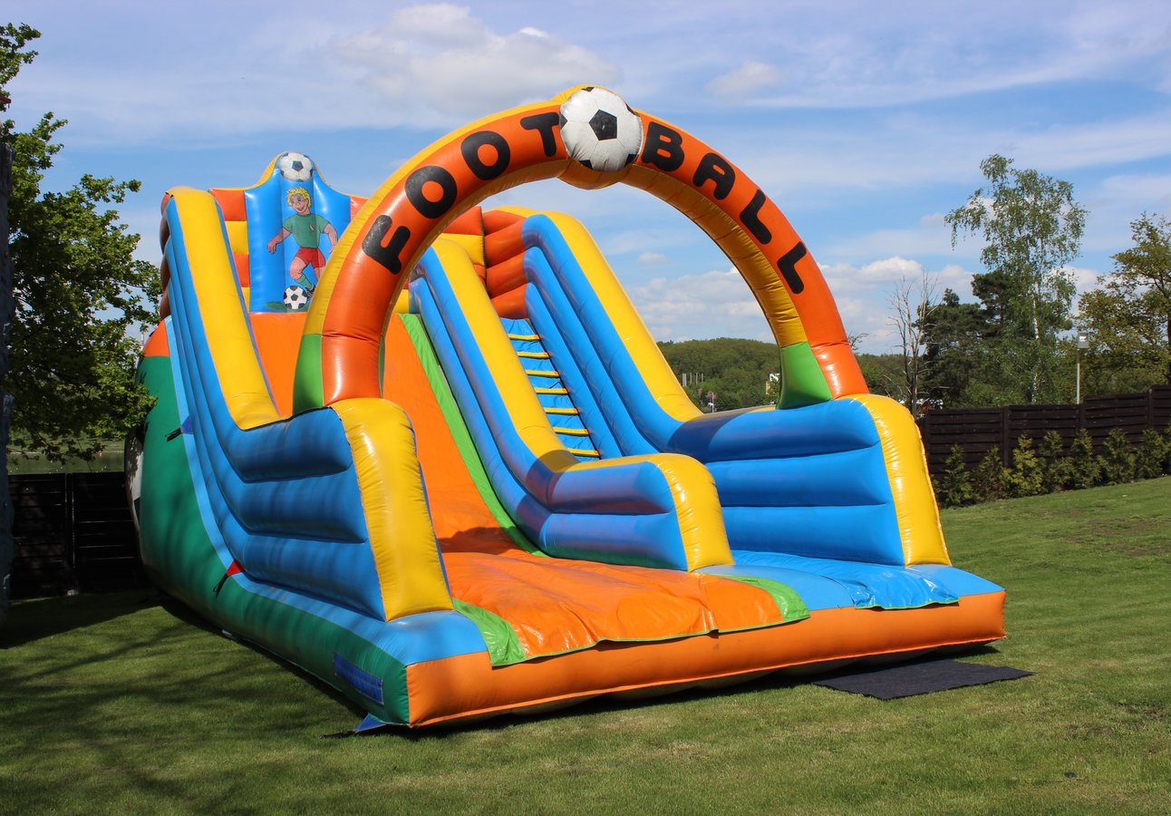 Ogromna, dmuchana zjeżdżalnia zrobi wrażenie i zapewni doskonałą zabawę zarówno dzieciom jak i młodzieży.