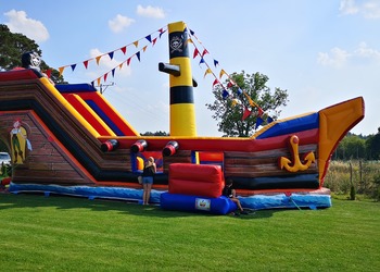Statek piracki to zjeżdżalnia zbudowana wewnątrz dmuchanego statku.